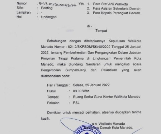 Manado, DodokuNews || Janji Wali Kota dan Wakil Wali Kota Manado, Andrei Angouw dan dr Richard Sualang (AA-RS) untuk melakukan penyegaran pada jabatan eselon II hari ini Selasa (25/1/2022) ditepati.