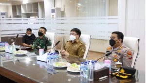 Manado, DodokuNews- Bertempat diruang rapat Walikota sore ini, Senin (07/02-2022),  Walikota Manado didampingi Dandim Manado dan Kapolresta Manado mendengarkan Arahan dan Penjelasan Presiden R.I soal Pandemi Covid 19 khususnya kasus Omicron saat ini.