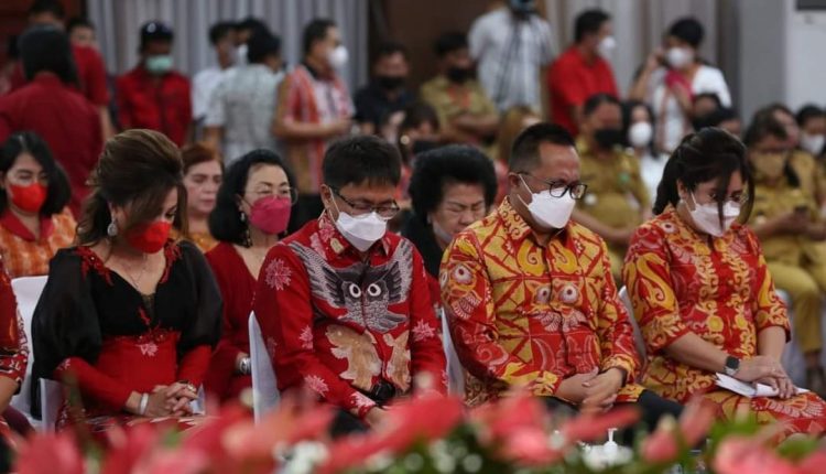 Ibadah syukur Satu Tahun Kepemimpinan AA-RS dipimpin oleh Ketua Sinode GMIM Pdt. Dr. Hein Arina dan dihadiri istri Walikota Irene Golda Angouw Pinontoan dan istri Wakil Walikota Manado dr. Merry Sualang Mawardi.