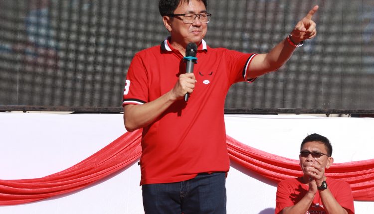 Wali Kota Manado yang juga sebagai Bendahara PDIP Sulut bersama semua peserta yang hadir tampak bersemangat mengikuti Senam Cinta Tanah Air ini.