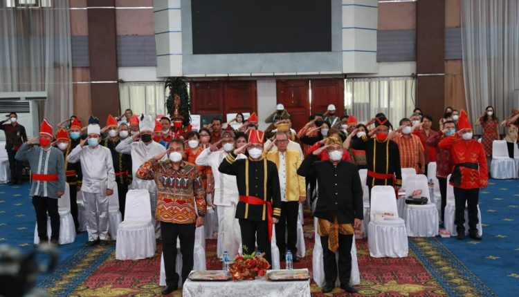 DODOKUNEWS – Wali Kota Manado Andrei Angouw Mengikuti Upacara Peringatan Hari Lahir Pancasila Tahun 2022 via daring/online di Ruangan Serbaguna Balai Kota Manado Rabu, (01/06/2022).