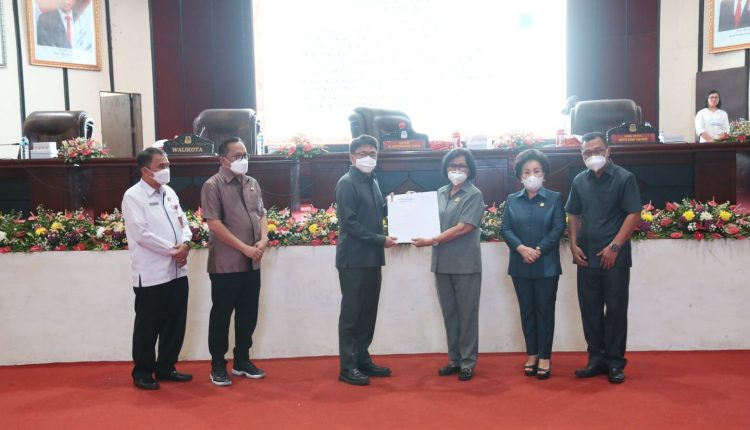 Sehubungan dengan agenda ini Wali Kota Manado memberikan sambutan terhadap Ranperda tentang Pertanggungjawaban Pelaksanaan APBD Kota Manado Tahun Anggaran 2021.