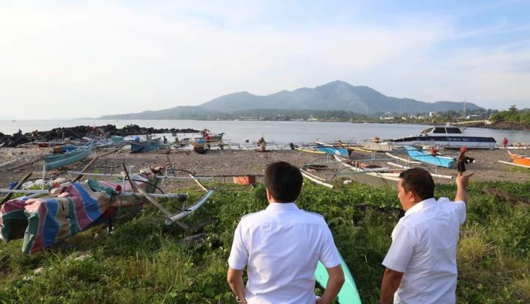 Didampingi Kadis PUPR Kota Manado Johnny Suwu Walikota melihat pelaksanaan pekerjaan rehabilitas pemecah ombak dilokasi tambatan Perahu.