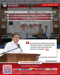 Wali Kota juga menambahkan, peran digitalisasi dalam pelayanan juga sangat penting untuk menekan inflasi. Disampaikannya, Pemerintah kota Manado saat ini tengah menerapkan digitalisasi baik dari tingkat lingkungan hingga di instansi pemerintah.