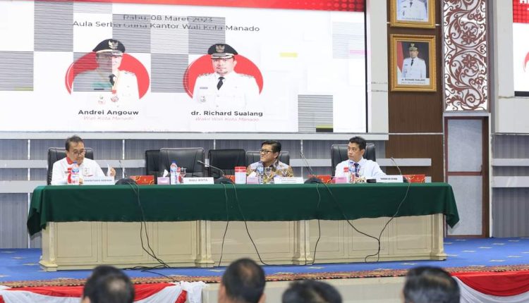 Dodokunews.com | Wali Kota Manado Andrei Angouw menghadiri kegiatan High Level Meeting (HLM) TPID dan TP2DD Kota Manado Tahun 2023 yang diadakan di gedung Serbaguna Kantor Walikota Manado.(08/03)