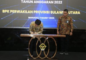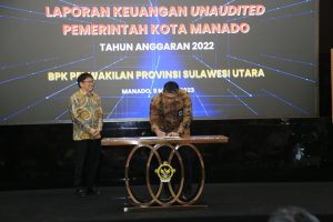Wali Kota Manado Bpk. Andrei Angouw menghadiri kegiatan penyampaian Laporan Keuangan Pemerintah Daerah (LKPD) Unaudited Kota Manado Tahun Anggaran 2022, bertempat di Kantor Badan Pemeriksa Keuangan (BPK) Perwakilan Provinsi Sulawesi Utara Jalan 17 Agustus Manado, Kamis (09/03).