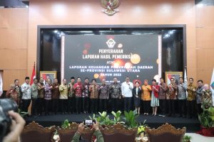 Penyerahan Laporan Hasil Pemeriksaan (LHP) Atas Laporan Keuangan Pemerintah Daerah (LKPD) oleh Anggota VI BPK RI juga sebagai Pimpinan Pemeriksaan Keuangan Negara Dr. Pius Lustrilanang, S.IP., M.Si., CSFA., CFrA, diterima langsung Bupati Franky Wongkar, SH yang didampingi Plt. Ketua DPRD Stevanus Lumowa, SE dikantor BPK perwakilan Sulawesi Utara pada Senin, 15 Mei 2023.
