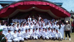 Pelaksanaan upacara bendera tersebut diikuti seluruh siswa baik TK, SD maupun SMA, ASN, hukumtua/perangkat desa, BPD, PKK, Forpimcam se- kecamatan Sinonsayang. Pun bertindak sebagai inspektur upacara yakni Camat, Manuel Salim.