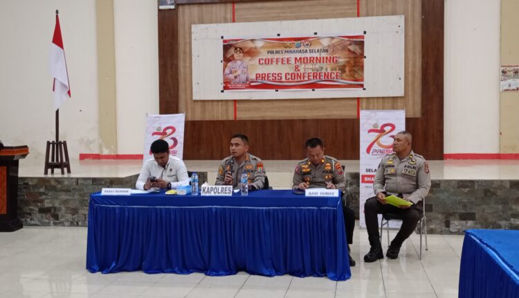 Hal ini disampaikan Kapolres AKBP. Feri R. Sitorus, SIK, MH yang turut didampingi Kasat Reskrim bersama Kasat Lantas serta Kasie Humas dalam Cofee Morning bersama awak media pada Senin, 24 Juni 2024 di aula Mapolres Minahasa Selatan.
