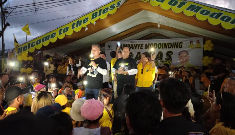 MINSEL, Dodokunews- Ribuan pendukung pasangan calon Bupati dan Wakil Bupati Petra Yani Rembang bersama Frede Aries Massie (PYR-FAM) tumpa ruah memadati jalan trans Sulawesi, tepatnya di desa Pinasungkulan, Kecamatan Modoinding pada, Jumat 25 Oktober 2024 dalam kegiatan kampanye.