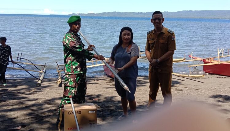 Dodokunews, MINSEL- Pemerintah Desa (Pemdes) Lopana Satu Kecamatan Amurang Timur Kabupaten Minahasa Selatan, Bantu Masyarakat nelayan dengan memberikan bantuan alat tangkap perahu lengkap bersama katinting (mesin) sebanyak 9 unit.